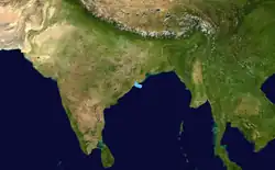 The India Meteorological Department (IMD) to tracked a cyclonic circulation over Myanmar on 11 September.[38][39]This disturbance would coalesce into a low-pressure area the next day,[40] further developing into a well-marked low-pressure just a few hours later.[41] Soon after, it developed into a depression.[42] Early the next morning, it became a deep depression over Bangladesh and West Bengal.[43] On 15 September, it weakened back down to a depression as it slowly moved westward over western India.