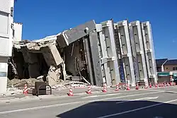 The Japan Meteorological Agency said it recorded a maximum seismic intensity of 7 (Shindo 7), the highest level on its seismic intensity scale,[49] the first time that an earthquake of that intensity had been observed in the country since 2018.[50][51] It corresponded to a maximum Modified Mercalli intensity of X–XI (Extreme).[15] The USGS assigned a maximum intensity of IX (Violent).[3] The maximum intensity was reported in Shika and Wajima, Ishikawa Prefecture.[52][53][54] Intensity 6+ was recorded in Nanao, Suzu, Noto and Anamizu. Intensity 6– was recorded in Nagaoka in Niigata Prefecture and in Ishikawa's Nakanoto.[51] The earthquake was also felt by residents in Tokyo and across the Kanto Region[25] and as far as Aomori Prefecture in the northern tip of Honshu to Kyushu in the south of the country.[50] A peak ground acceleration of 2,826 gal was observed in Shika, which was close to that recorded during the 2011 Tohoku earthquake which measured 2,934 gal.[55] Due to the ground beneath Wajima and Anamizu comprising soft sediments, ground motions were amplified.[56] However, the amplification was strongly influenced by soil softening processes directly caused by the strong shaking.[57] This also affected the observed intensity in Anamizu, Wajima, Monzen, and Noto Island.