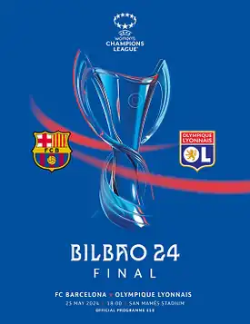 The 2024 UEFA Women's Champions League final was the final match of the 2023–24 UEFA Women's Champions League, the 23rd season of Europe's premier women's club football tournament organised by UEFA, and the 15th season since it was renamed from the UEFA Women's Cup to the UEFA Women's Champions League. The match was played at the San Mamés Stadium in Bilbao, Spain,[6] on 25 May 2024,[7][8][9] between Spanish club Barcelona and French club Lyon, a repeat of the 2019 and 2022 finals.