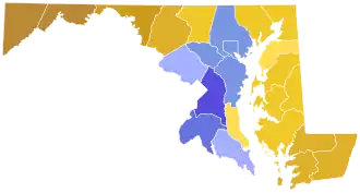 Alsobrooks: 40–50% 50–60% 60–70% 70–80% 80–90% >90% Hogan: 40–50% 50–60% 60–70% 70–80% 80–90% >90% | |||||||||||||||||