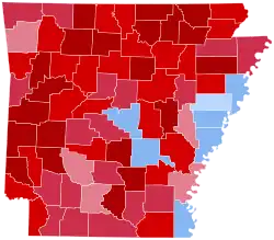 Trump easily carried the state for the third time in a row in 2024, this time by a 30.64-point margin, which marks the eighth consecutive presidential election cycle in which Republicans have increased their margins in Arkansas.[2] Trump's margin of victory was the highest since 1972.