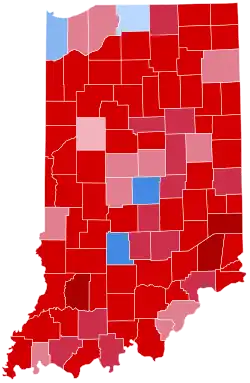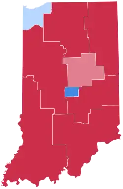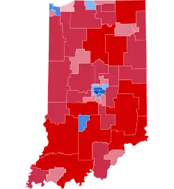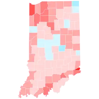 Republican Donald Trump won Indiana for the third time in a row, with a comfortable margin of 18.96%; he had swept the state in the previous two presidential election cycles with former Governor of Indiana Mike Pence on the ticket: by 19% in 2016 and by 16% in 2020. This makes the first time since 2008 that it voted for the winner of the national popular vote. Prior to the election, all major news organizations considered Indiana a state Trump would win, or a red state. Trump flipped Tippecanoe County, which voted for him in 2016 but not in 2020. He also improved his margins in most other counties in the state, notably in Lake County, home to Gary and parts of the Chicago Metropolitan Area, which is also the most longtime Democratic county in the state. Despite Trump losing it by 5.6 points, this was the best performance by a Republican in this county since 1972, when Nixon carried it as part of his national landslide victory.[3]