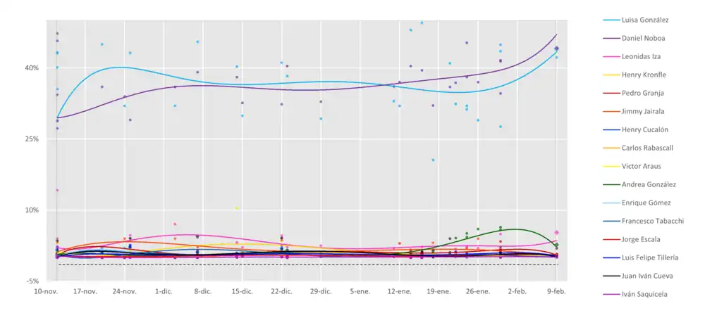 - ^ "CNE proclama resultados de la primera vuelta: Daniel Noboa superó con 16.746 votos a Luisa González". Primicias. 12 March 2025. Retrieved 26 March 2025.