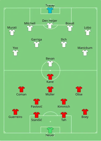 - ^ a b c "Tactical Line-up: FC Bayern München v. Auckland City FC" (PDF). FIFA.com. Fédération Internationale de Football Association. June 15, 2025. Retrieved June 15, 2025.