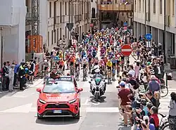 Other riders expected to compete for the podium were Adam Yates (UAE Team Emirates XRG), Ayuso's teammate and potential co-leader who finished third in the 2023 Tour de France.[9] His twin brother Simon Yates (Visma–Lease a Bike), a former Vuelta champion, and Richard Carapaz (EF Education–EasyPost), Giro champion in 2019, were listed as contenders despite mixed prior results in 2025.[12][9] Egan Bernal (Ineos Grenadiers), winner of both the Tour in 2019 and Giro in 2021, was seen as a significant challenger for the first time since his 2022 crash.[12][9] Michael Storer (Tudor Pro Cycling Team) had entered into contention with a "dominant performance" at the Tour of the Alps, where he won a stage and the general classification.[9][13] Other outsiders mentioned by multiple publications included Antonio Tiberi (Team Bahrain Victorious), Mikel Landa (Soudal–Quick-Step), Derek Gee (Israel–Premier Tech), Tom Pidcock (Q36.5 Pro Cycling Team), and Giulio Ciccone (Lidl–Trek).[9][11]