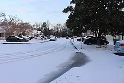 Freezing rain and snow took place in the Houston area which had started on the evening of January 20 and continued into January 21, with up to 6 inches (15 cm) of snow falling near La Porte and up to 0.18 inches (4.6 mm) of freezing rain falling near League City.[10][11] "Multiple" people died in a multi-car pileup in southwestern Texas. Space Center Houston was closed during the storm, and all tours on the ground were cancelled. Many major roadways in Houston had snow and ice accumulation on them by early morning on January 21, which led to dozens of road closures.[12] Two more people died, one in a crash on January 19 in Harris County after her car collided head-on with a tractor trailer and a homeless man was found dead the following morning in Katy. An estimated 1,100 people stayed at county-run shelters during the winter storm. The majority of flights from Houston airports were cancelled, rendering them unavailable.[13] Beaumont set an all-time monthly record low of 11 °F (−11.7 °C) for January.[14] The National Weather Service Lake Charles, Louisiana also issued a blizzard warning for Orange and Jefferson Counties including the cities of Beaumont, Orange and Port Arthur.