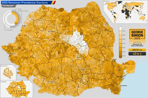 - ^ "Nationalist Simion wins first round of Romanian election rerun". BBC. 5 May 2025. Retrieved 8 May 2025.