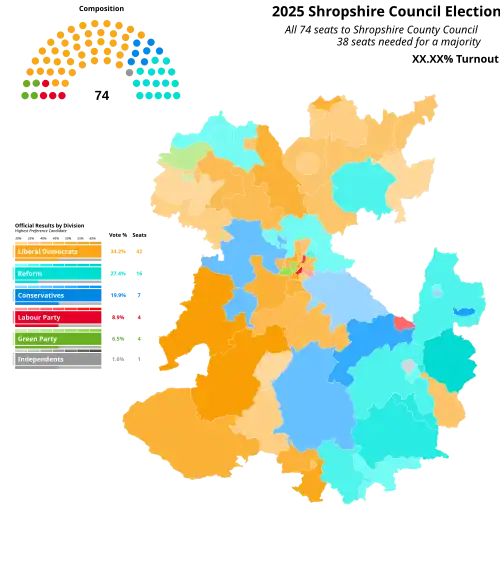 - ^ Live, Shropshire (2025-05-02). "Liberal Democrats seize control of Shropshire Council". Shropshire Live. Retrieved 2025-05-02.