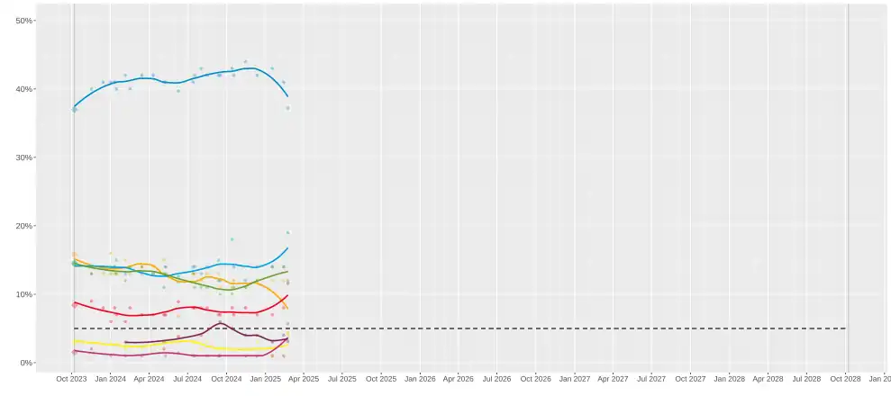 | Civey | 28 Feb – 14 Mar 2025 | 5,006 | 41 | 11 | 15 | 13 | 8 | 2 | 2 | 4 | 5 | 26 |