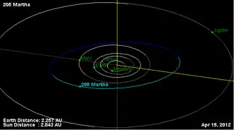 - ^ "205 Martha". JPL Small-Body Database. NASA/Jet Propulsion Laboratory. Retrieved 12 May 2016.