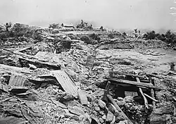 2nd Division's next task was to clear the Japanese from Kohima Ridge. The divisional RE failed in several attempts to bulldoze a route up to 'IGH Spur' overlooking the District Commissioner's Bungalow (scene of hard fighting during the siege), but 208 Fd Co cut a mule track for supplies. 5 Brigade then attacked towards Naga Village on the evening of 25 April in heavy rain, with 208's sappers cutting tracks and guiding supplies and stretcher-parties along them. The action continued for days; on 3 May the tired Worcesters were relieved from defending the perimeter of the brigade 'box' by sappers of 208, similarly they relieved 1/8th Bn Lancashire Fusiliers (4 Bde) on 15 May. On 10 May the sappers made a new track to get a dismantled 6-pounder anti-tank gun up to the ridge to deal with Japanese bunkers at close range. On 16 and 17 May the sappers winched tanks up to the ridge by bulldozer, and 208 Fd Co also sent out parties with pole charges to destroy bunkers. By 24 May the reinforced 2nd Division had succeeded in driving the Japanese off Kohima Ridge and 5 Bde was relieved.[44][45][46]