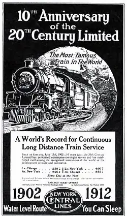 21. ^ King, A. Rowden (September 1912). "Making A Train World Famous: How the 20th Century Limited has Become a Business Necessity and its Name an English Idiom by Advertising". Advertising & Selling. 22 (4). New York: The Advertising & Selling Co.: 12–16.