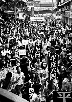 - ^ a b c d ""Hundreds in Hong Kong protest to mark Tiananmen". China Post, Retrieved on 31 May 2009.