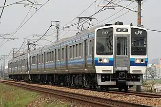 The 213 series (213系, 213-kei) is a suburban electric multiple unit (EMU) train type introduced in March 1987 by Japanese National Railways (JNR) shortly before its breakup and privatization, and currently operated by West Japan Railway Company (JR-West) and Central Japan Railway Company (JR Central) in Japan. It is based on the earlier 211 series, although it differs in having two pairs of doors per side on each car instead of three.
