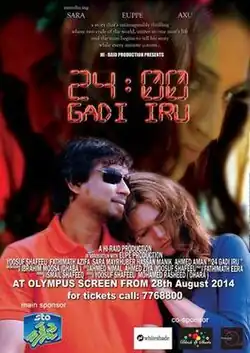 24 Gadi Iru (lit: 24 hours) is a 2014 Maldivian suspense thriller film directed by Yoosuf Shafeeu and Mohamed Rasheed. Co-produced by Ismail Shafeeq and Mohamed Rasheed under Hi-Raid Productions, the film stars Yoosuf Shafeeu, Fathimath Azifa and Sara Mayrhuber in pivotal roles. The film was released on 28 August 2014.[1] The film revolved around a romantic relationship between a girl diagnosed with mental illness and her psychiatrist.[2] Production of the film began in 2010, though it was theatrically released four years later.[2]