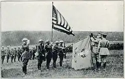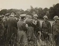 As the size of the AEF grew, the division was placed under command of I Corps in July.[10] When the Aisne-Marne campaign began shortly thereafter, the division, under I Corps was placed under command of the French Sixth Army protecting its east flank. When the offensive began, the division advanced up the spine of the Marne salient for several weeks, pushing through Belleau Wood, moving 10 miles from 18 to 25 July. On 12 August it was pulled from the lines near Toul to prepare for the next offensive.[11] The division was then a part of the offensive at Saint-Mihiel, during the Battle of Saint-Mihiel. The division then moved in position for the last major offensive of the war, at Meuse-Argonne. This campaign was the last of the war, as an armistice was signed shortly thereafter.[12] During World War I the 26th Division spent 210 days in combat, and suffered 1,587 killed in action and 12,077 wounded in action.[5] The division returned to the United States and was demobilized on 3 May 1919 at Camp Devens, Massachusetts.[1]