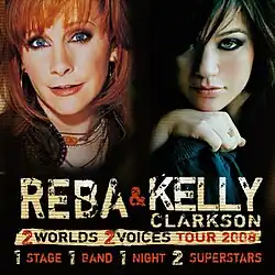 The 2 Worlds 2 Voices Tour was a co-headlining concert tour by American recording artists Reba McEntire and Kelly Clarkson that took place in two segments during 2008.[1] The tour only visited North America.[2] The tour's shows featured the two singers sharing the same band and stage[2] and performing each other's songs.