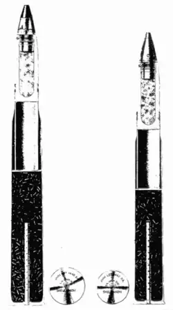 A comparison of HE rounds for M1917 (left) and M1918 guns from a 1944 manual (free space in cases reflects the improvement of the propellant)