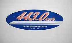 On 26 July 1996, the train recorded a Japanese national speed record of 443.0 km/h (275.3 mph) on the Tokaido Shinkansen between Maibara and Kyoto.[3] This record still stands.