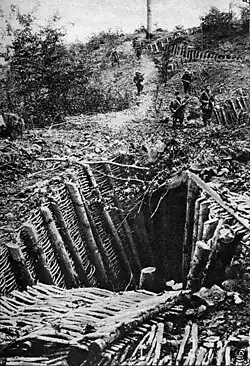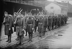 On 18 May 1918, four battalions of the 32nd division replaced decimated French troops on the front line at Haute Alsace, along a 17 miles (27 km) front from the Aspach-le-Bas to the Swiss border. The division's units conducted combat patrols into Germany itself, gaining the distinction of being the first US troops to set foot on enemy soil in World War I.[12]