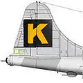 On their vertical stabilizers they wore a 12-foot (4 m) square black box unit identification mark with a large capital letter K superimposed. This was to assist with identifying squadron aircraft out of a crowded sky to form up on during the daylight missions. In late summer the 'K' was infilled with a bright orange–yellow paint for better recognition. In late summer in 1945, it was ordered that all aircraft would have their undersides painted a glossy black. The intention was to mask them from enemy searchlights.