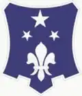 - Description/Blazon A silver color metal and enamel device 1+1⁄16 inches (27 mm) in height overall consisting of a shield blazoned: Azure, in chief three mullets one and two, the lower ones with two points up and one-half the size of the upper, in base a fleur-de-lis Argent.