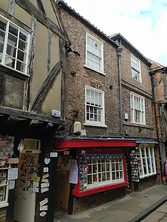39 The Shambles is a historic building in York, England. Grade II* listed, part of the structure dates to the late 15th century, with an extension added in the late 17th century, followed by a remodelling in the early 19th century.[1]