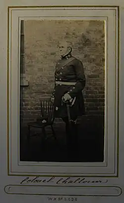 A new 3rd Royal Surrey Militia (3rd RSM) was formed at Kingston upon Thames on 26 March 1853 under the command of Thomas-Chaloner Bisse-Challoner, a Surrey landowner and former officer in the 1st Dragoon Guards.[7][13][15][21][30][37][38]
