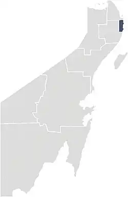 Under the 2023 districting plan adopted by the National Electoral Institute (INE), which is to be used for the 2024, 2027 and 2030 federal elections,[6] the 3rd district covers the 10 precincts (secciones electorales) that make up the municipality of Isla Mujeres and 321 precincts in the neighbouring municipality of Benito Juárez.[7]