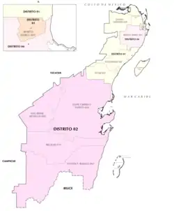 11. ^ "Descriptivo de la distritación federal: Quintana Roo (marzo 2017)" (PDF). Cartografía. INE. March 2017. Archived from the original (PDF) on 14 August 2017. Retrieved 3 September 2024.