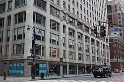 The ground floor contained nine storefronts.[31] There was also a main entrance lobby, flanked on either side by marble stairs that rose to the mezzanine.[8][32] The second floor and mezzanine were both intended for the use of a financial institution,[31] such as a bank.[8][32]