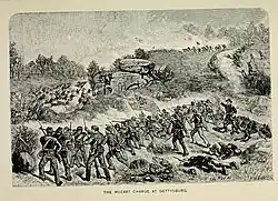 The 40th New York played a critical role in the defense of the Federal left flank during the second day at Gettysburg, delaying the approach of Law's Division to Little Round Top. Initially deployed with the rest of the Third Brigade to defend the Wheatfield, Maj. Gen. David B. Birney ordered the 40th southeast into the Plum Run valley. There the orders were to delay at all costs elements of Benning's Georgia brigade and Law's Alabama brigade, as Confederates began forcing back Hobart Ward's 2nd Brigade of the Third Corps. The 40th New York charged seven times down the course of Plum Run, into the boulders of Devil's Den and the Slaughter Pen.[2]