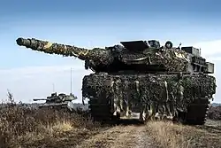The battalion's main armament is the Leopard 2 A6MA2 main battle tank. The unit has 49 tanks of these upgraded MBT's. The tank is modified with a Dutch battlefield management system. This is done anticipating the fact that 414 Tank Battalion has joined the Very High Readiness Joint Task Force (VJTF) of the NATO Response Force in 2019.[8][9]