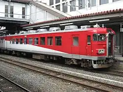 The 455 series (455系, 455-kei) is a Japanese dual-voltage (1,500 V DC and 20 kV AC 50 Hz) electric multiple unit (EMU) train type introduced by Japanese National Railways (JNR) on express services in 1965 and later operated by East Japan Railway Company (JR East), West Japan Railway Company (JR-West), and Kyushu Railway Company (JR Kyushu).[1]