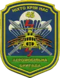 The 45th Air Assault Brigade was a brigade of the Ukrainian Air Assault Forces, formed twice. The brigade was first formed in 1993 from elements of the 299th Guards Airborne Regiment of the 98th Guards Airborne Division. Part of the 1st Airmobile Division, the brigade was disbanded. The brigade was reformed from an airmobile battalion in 2016. The brigade was disbanded again in 2020.[1]