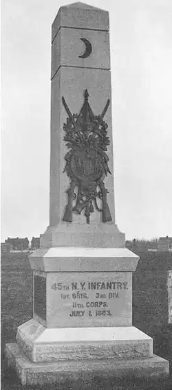 - New York State Military Museum and Veterans Research Center – Civil War – 45th Infantry Regiment History, Gettysburg Monument photos and info, table of battles and casualties, Civil War newspaper clippings, and historical sketch, for the 45th New York Infantry Regiment.