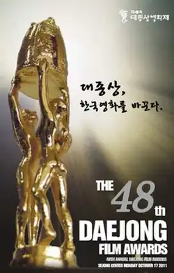 The 48th Grand Bell Awards (Korean: 대종상 영화제; RR: Daejongsang Yeonghwajae), also known as Daejong Film Awards, are determined and presented annually by The Motion Pictures Association of Korea for excellence in film in South Korea.[1][2] The Grand Bell Awards were first presented in 1962 and have gained prestige as the Korean equivalent of the American Academy Awards.[3]