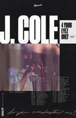 - ^ a b J. Cole (January 21, 2017). "4 Your Eyez Only Tour. On sale Friday. See you in a few". Twitter. Retrieved April 8, 2017.