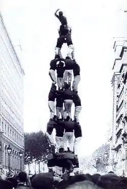4 in 8, which in Catalan is called 4 de 8, is a castellers human tower with 8 levels and 4 people per level in the trunk, except for the last three levels called the top crown (pom de dalt in Catalan), which, like in most other castells, consists of the pair (dosos), a bending child (acotxador) and the crowner (enxaneta). It is usually the first structure with 8 levels that groups of castellers complete. It is often referred as carro gros.[1]
