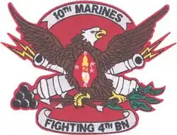 4th Battalion 10th Marines (4/10) was an artillery battalion in the United States Marine Corps that was formed on 11 April 1941[1] just prior to America's entrance into World War II and served until the end of the 1980s. It fought at the Battle of Tarawa and the Battle of Saipan during World War II and was sent to Cuba during the Cuban Missile Crisis in case hostilities broke out. The battalion was deactivated for the last time in 1989 and remains in an inactive status today.