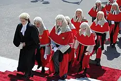 Senior members of the judiciary, led by the Chief Justice Sian Elias (second from left), at the State Opening of Parliament