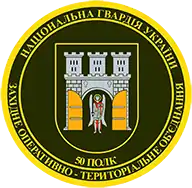 After the reformation of the National Guard of Ukraine, it became a part of it as the 50th "Simon Hnatovich Vysochan" Regiment in 2014. It saw relatively limited combat during the War in Donbass with an officer (Viktor Mykolayovych Redkyn) being killed on 1 November 2014 and a soldier (Logunov Roman Vasyliovych) being killed on 6 September 2015.[2]