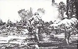 The following year, in November 1942, the 51st Division was allocated to the 18th army, and was shipped to Rabaul.[4] By 28 February 1943, the parts of the 51st Division had left Rabaul for Lae in New Guinea. The Allied aircraft intercepted the convoy on 2 March 1943, resulting in the Battle of the Bismarck Sea, resulting in only 1,200 troops of 6,900 reaching Lae. A further 800 troops from the 115th Infantry Regiment were rescued and ferried by the destroyers Yukikaze and Asagumo to Finschhafen and travelled to Lae overland. Meanwhile, the rest of the 51st Division reached Lae in May 1943 having moved there in several landing craft following the New Guinea coast from Madang or from the Dampier Strait. The division eventually concentrated in Salamaua area,[5] and subsequently took part in the Salamaua–Lae campaign.[4]