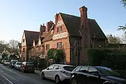 The dwellings had been built in the early 18th century, or earlier. They were refaced and partly rebuilt for Rowland Egerton-Warburton of Arley Hall, the architect being John Douglas.[1] The work was carried out around 1870,[2] or just before 1875.[1] It was part of Egerton-Warburton's "campaign to restore the village and render it picturesque in Victorian eyes".[3] The two outer buildings are houses and the two central buildings are cottages. They are built in brown brick with clay tile roofs, and have two storeys plus attics. Each building has a gable, those on the outer buildings being larger than those on the inner buildings, and all are decorated with brick and plaster.[1]