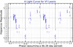 A light curve for VY Leonis, plotted from Hipparcos data[7]