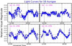 Four visual band light curves for 59 Aurigae, adapted from Zhiping (2000)[1]