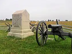 ![]() 5th Massachusetts Battery Monument on the Gettysburg Battlefield near the Peach Orchard | |