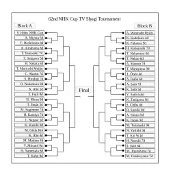 - ^ a b "Dairokujūnikai NHKhai Terebi Shōgi Tōnamento" 第62回NHKテレビ将棋トーナメント [62nd NHK TV Shogi Tournament] (in Japanese). NHK. Archived from the original on January 22, 2013. Retrieved August 22, 2018.