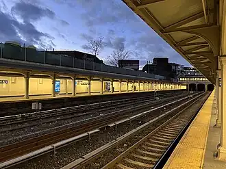 Geographically east of the station, a track connection to a siding that served the Rubel Ice Company once existed; this connection was removed in the 1930s. The siding was connected to the Manhattan-bound track.[32]