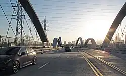 State Route 110 has offramps that connect to 6th Street, but there are no on-ramp connections. Similarly, State Route 60 has a westbound onramp and offramp at 6th Street, but no eastbound connection. 6th Street is discontinuous and therefore does not connect with US 101, Interstate 710, and a concurrent section of Interstate 5 and Interstate 10.